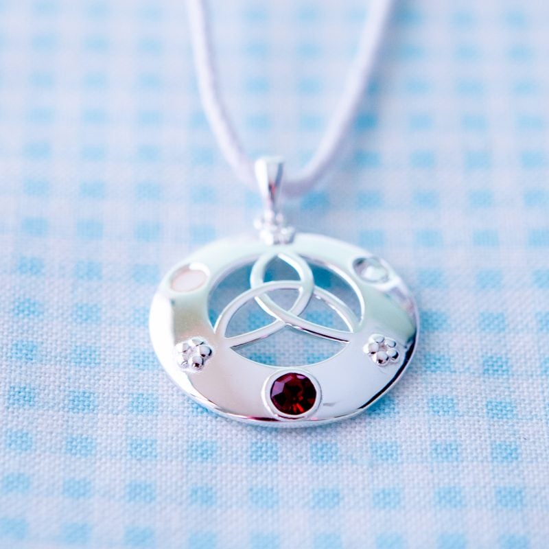 Dieses besondere Schmuckstück aus Sterling Silber mit Granat, Perlmutt und Bergkristall kommt mit weißem Band und verpackt in einem weißen Organza-Beutel. Zu den Shops…