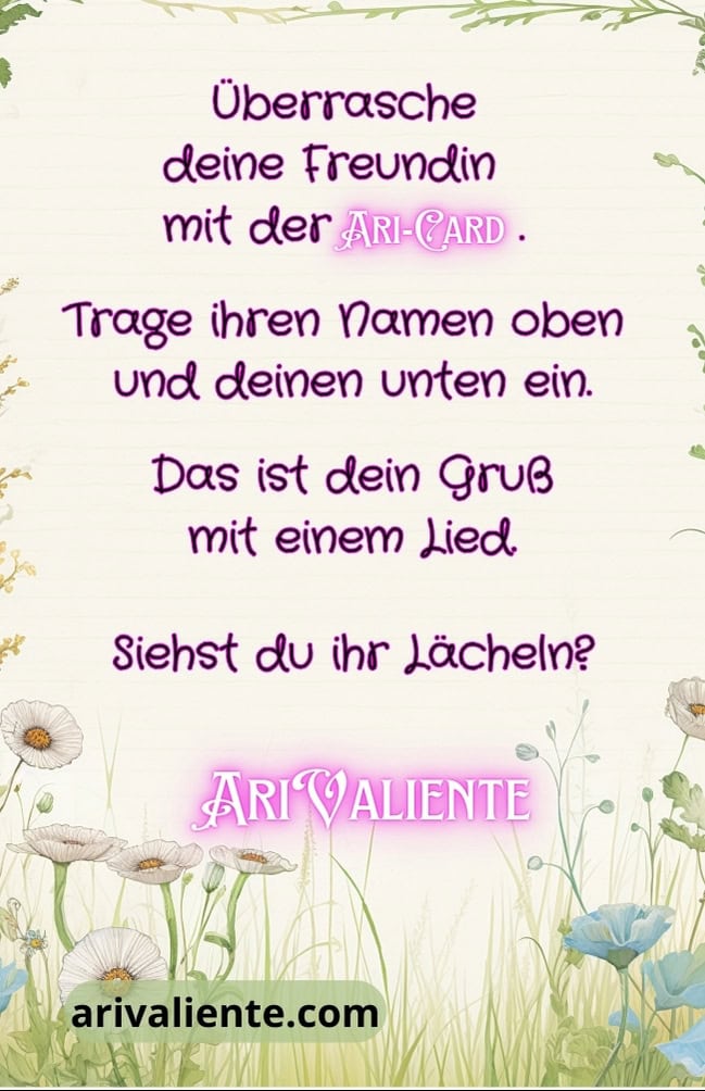 Einfach E-Mail an mail@arivaliente.com senden, dann bekommst du sie per Post, oder in den Partnerläden von AriValiente abholen.